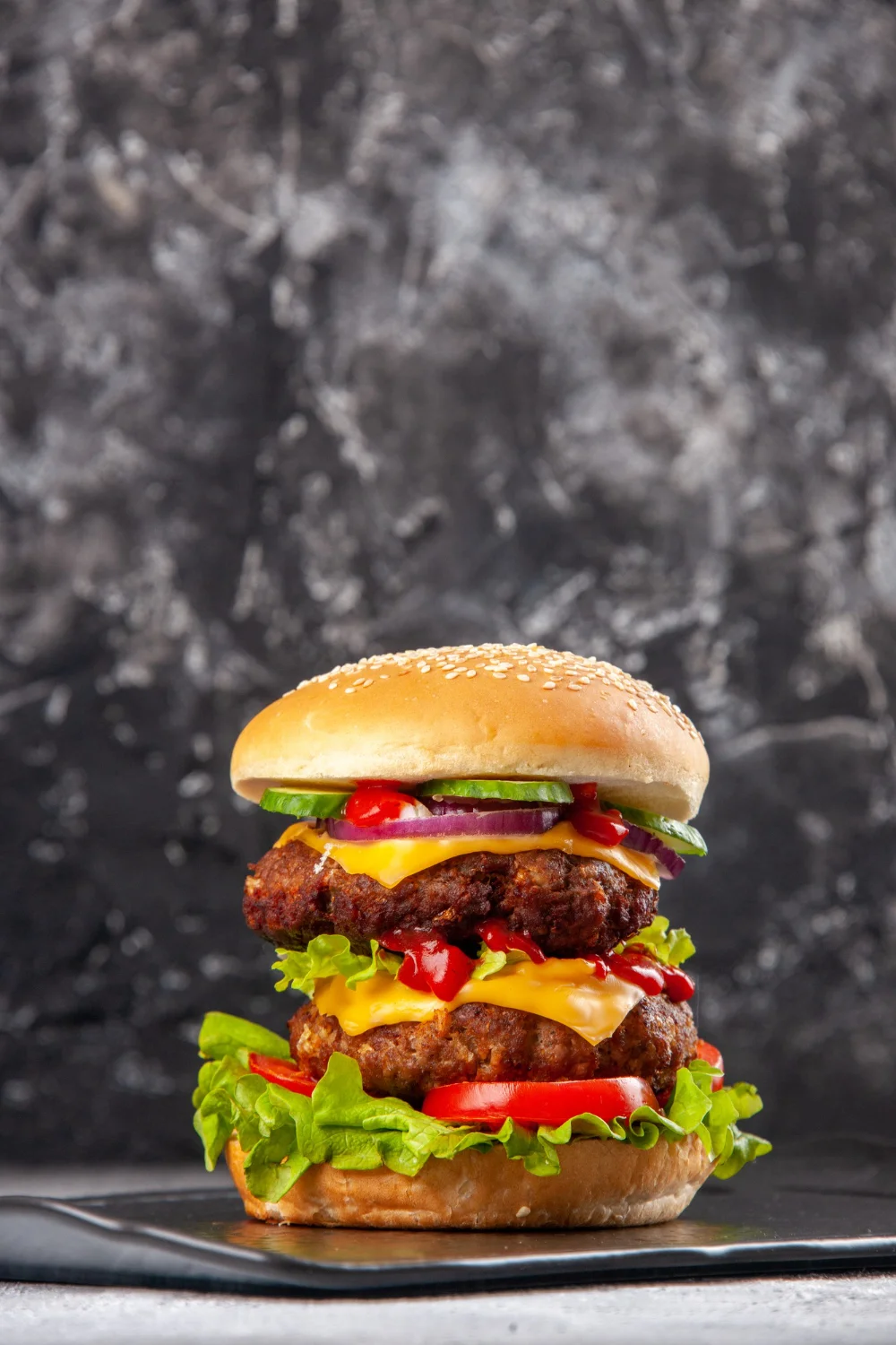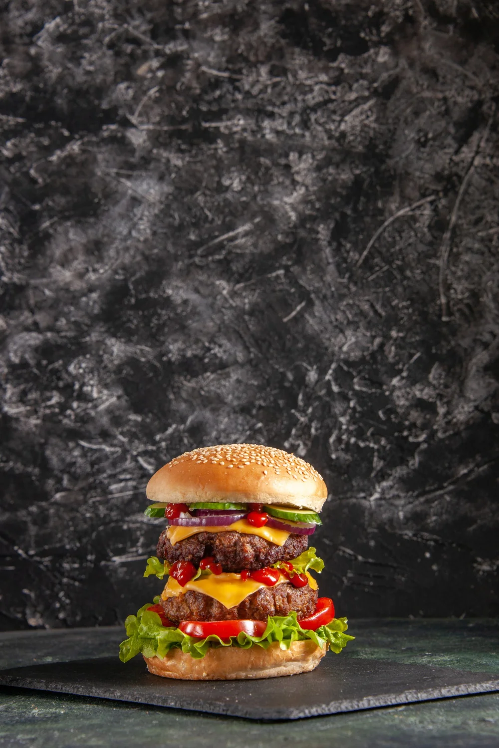 O Double Tower Supreme é o hambúrguer para quem não se contenta com pouco. Uma verdadeira torre de sabor, com dois suculentos hambúrgueres grelhados, cobertos com queijo cheddar derretido, alface crocante, tomate fresco, cebola roxa e fatias de pepino que trazem frescor. Finalizado com ketchup artesanal e servido em um pão de gergelim macio. Acompanha nuggets dourados e batatas fritas crocantes, para transformar sua refeição em uma experiência completa.